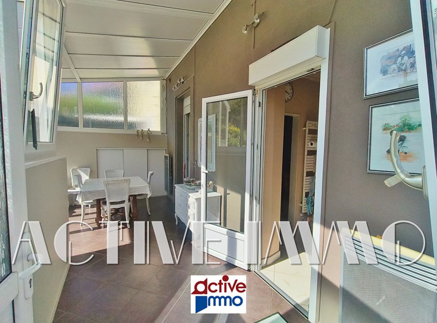 La véranda dispose d'une entrée sécurisée par l'extérieur (sur le côté de la maison), et donne accès au jardin joliment arboré avec son cabanon, ainsi qu'à la terrasse.